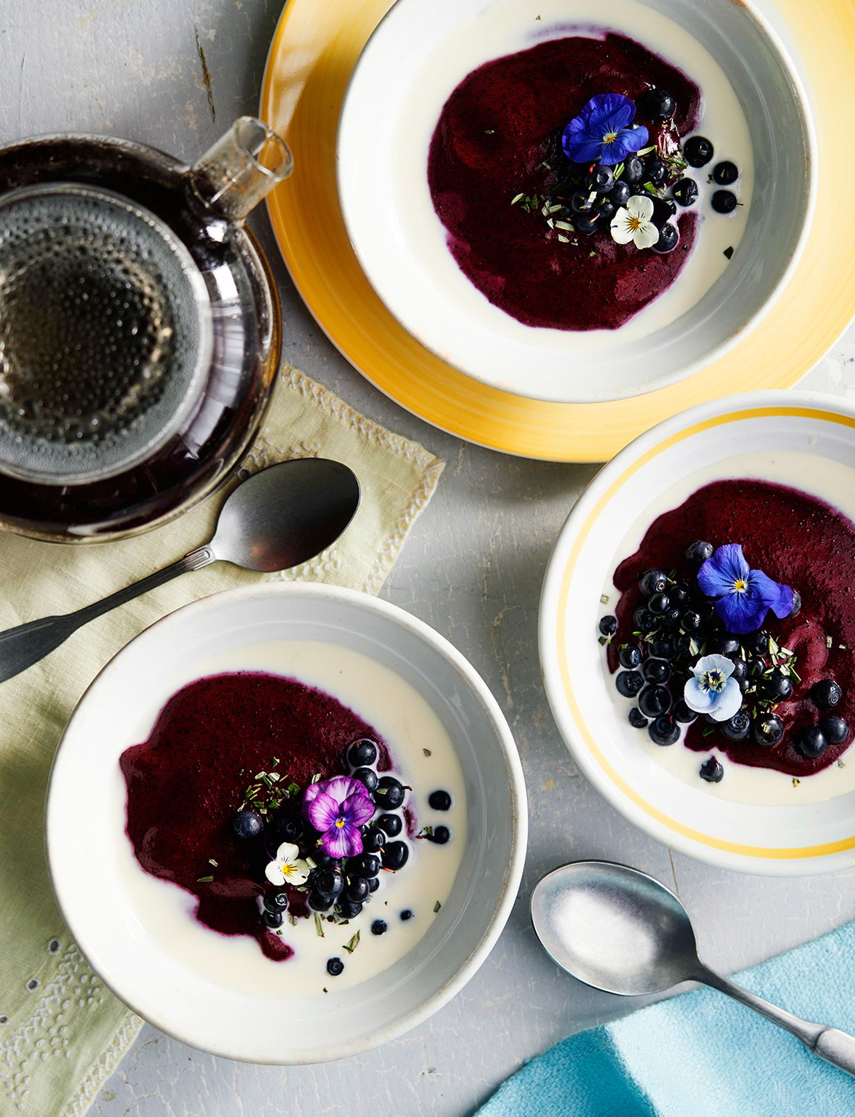 Sinistä samettia! Mustikkavispipuuro on ehkä lempein herkku, mitä mustikoista voi tehdä. Rosmariinimaito antaa vispipuurolle metsäisen makuvivahteen.