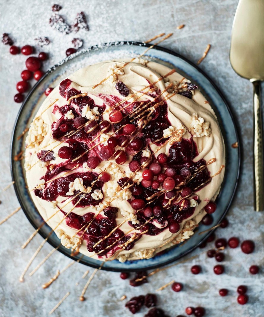 Jäiset karpalot ja kinuski ovat klassikkopari, joka ansaitsee paikkansa myös jäätelökakussa! Massana on itse tehty, herkullisen pehmeä pikajäätelö, joka saa riisimuroista hauskaa rousketta. Voit tarjota kakun joko jälkiruokana tai kahvipöydässä.