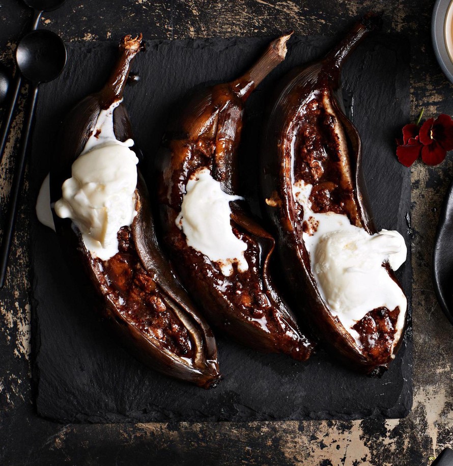Suklaavoi lusikoidaan banaanien viiltoihin ja banaanit laitetaan hiilloksen ylle kypsymään. Kuoret saavat mustua täysin, ja herkut ovat valmiita, kun suklaa niiden sisässä on sulanut.