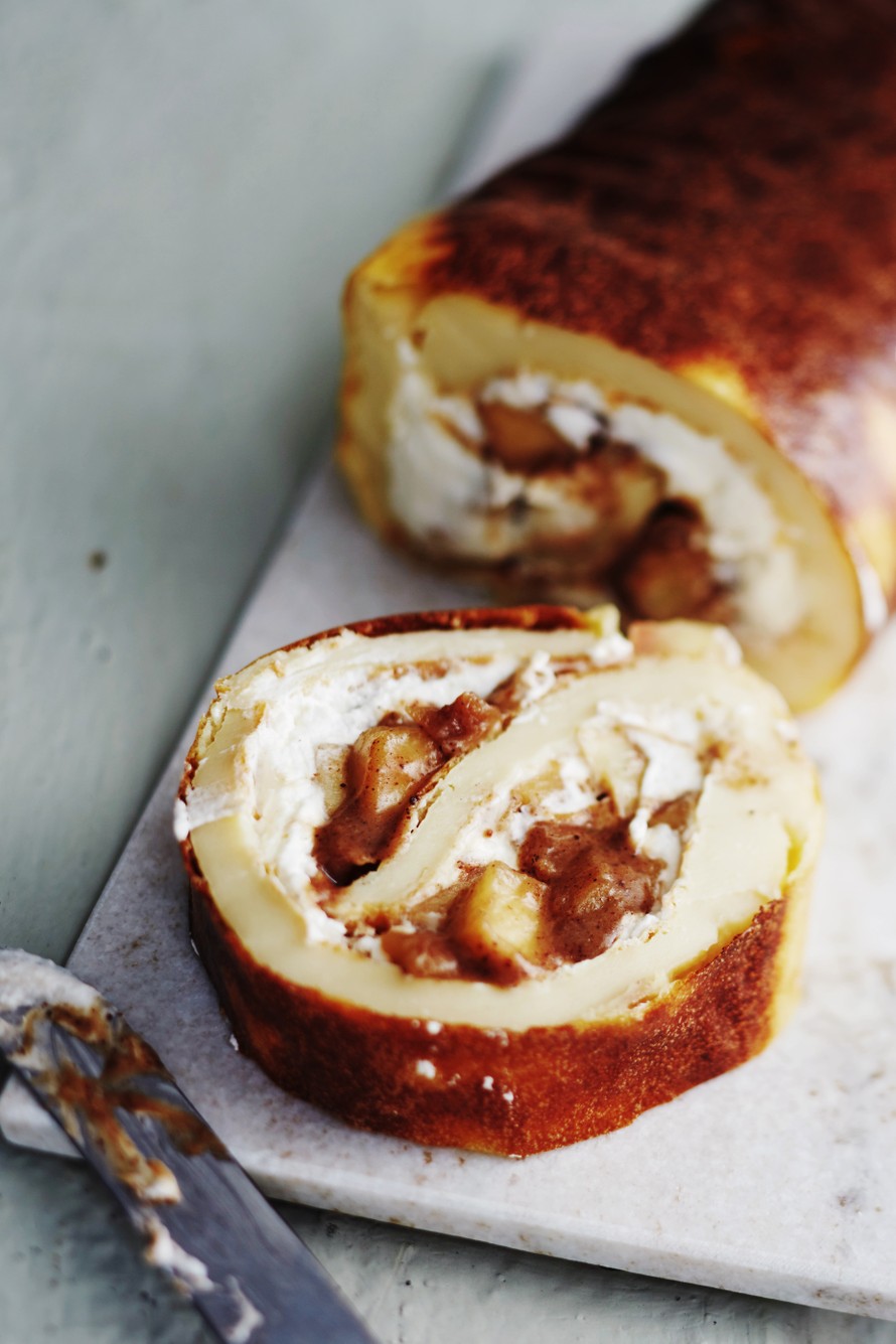 Omenalla täytetty pannarirulla kutkuttaa nostalgia-antureita ja hivelee makuhermoja. Tuttu pannari on kiepsautettu kätevästi rullalle ja täytetty karamellisoiduilla omenoilla.