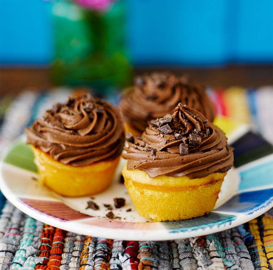 Kuppikakkujen suklaakuorrute on niin hyvää, että sitä tekisi mieli syödä sellaisenaan.