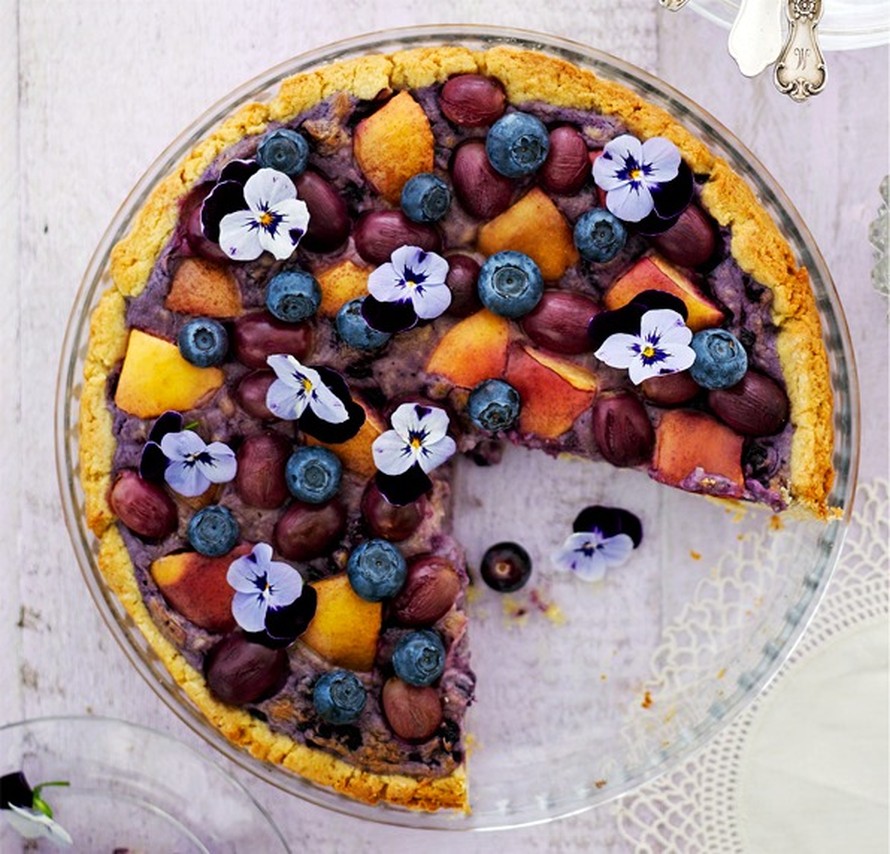 - Anna jäähtyä hyvin ennen kuin leikkaat piiraan tarjolle. Koristele esimerkiksi syötävillä orvokeilla.