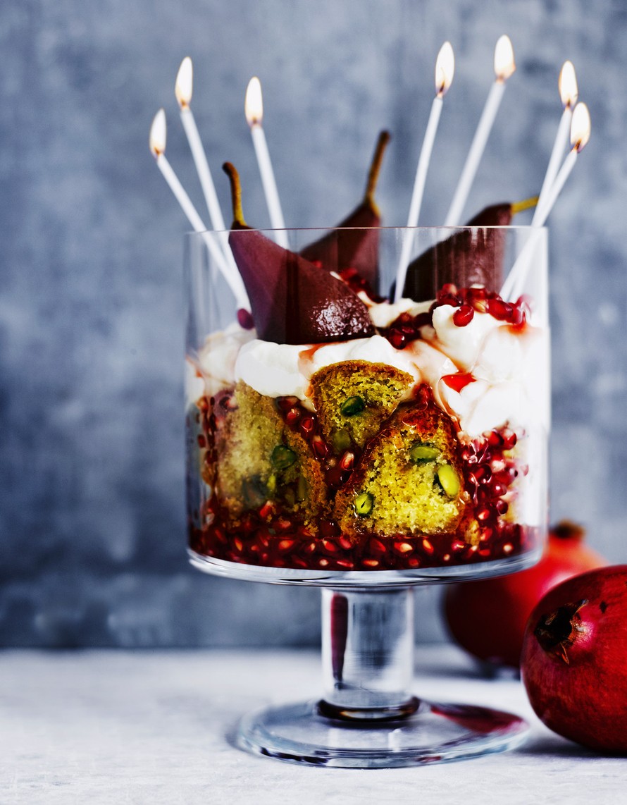 Joulun trifle tulvii Lähi-idän makuja, granaattiomenaa ja joulumausteita.