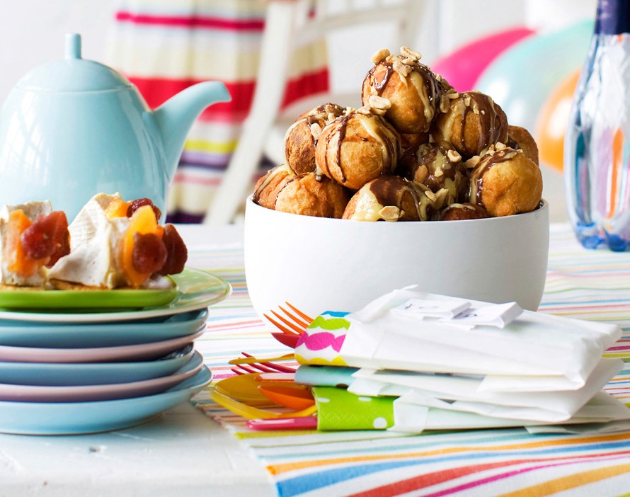 - Uppopaista munkit pienissä erissä ja viimeistele pinta ennen tarjoilua maitotiivisteestä keitetyllä kinuskilla ja suolapähkinärouheella.