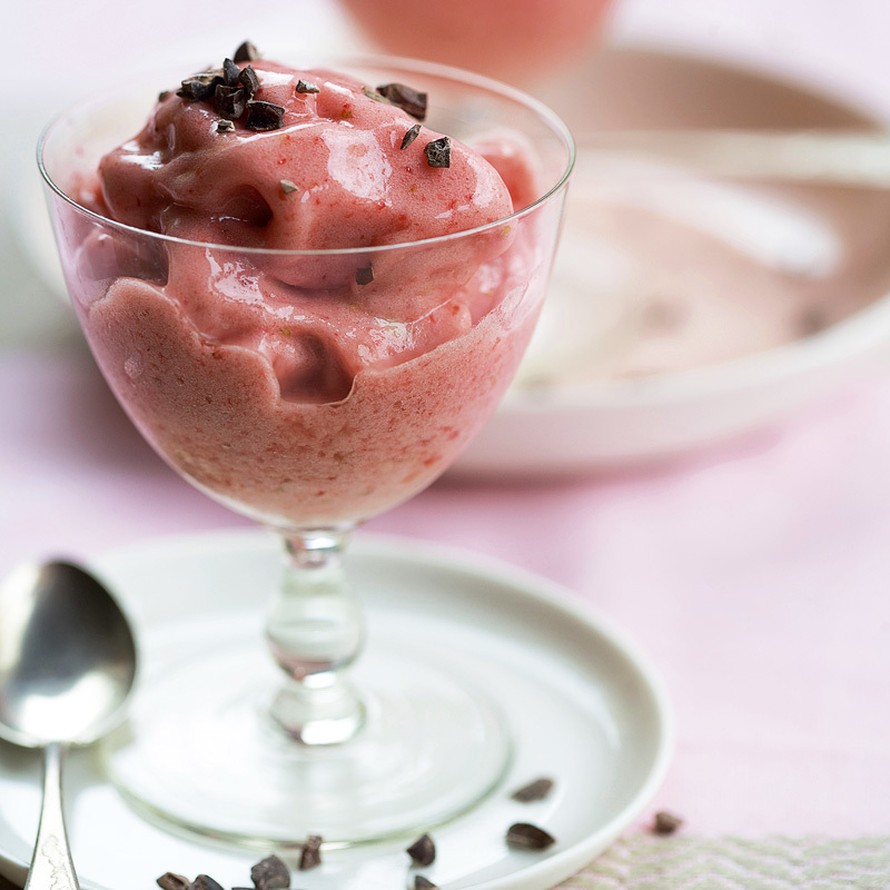 - Käytä konetta, kunnes seos on tasaista. Seoksesta pitäisi tulla paksua lusikalla syötävää jäätelön korviketta. Voit ohentaa sitä vedellä.