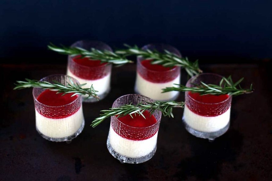 Rosmariinipannacotta puolukalla