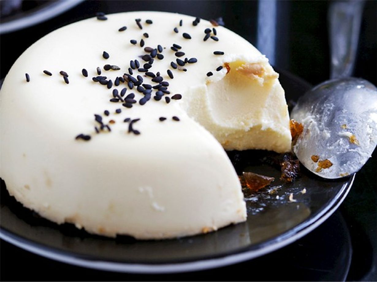 - Paahda seesaminsiemeniä öljyssä pannulla keskilämmöllä pari–kolme minuuttia. Lisää kerma ja nosta pannu pois liedeltä. Anna kerman maustua kahden tunnin ajan. Valuta maustunut kerma hienosäikeisen siivilän läpi toiseen kulhoon painellen samalla siemenistä mahdollisimman paljon makua kerman joukkoon.