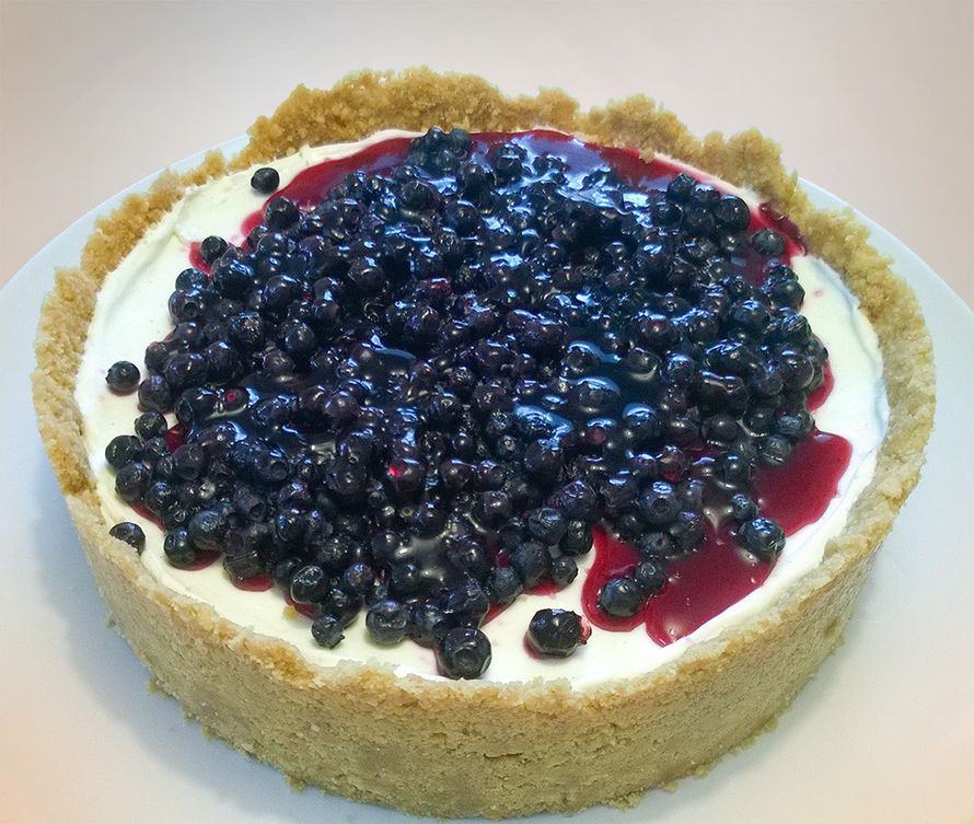 Laita liivatelehdet kylmään veteen. Vaahdota vispikerma. Sekoita keskenään tuorejuusto, sitruunajogurtti ja ruokosokeri. Purista sitruunan mehu ja kuumenna se. Lisää liivatelehdet kuumaan sitruunamehuun ja anna jäähtyä hetki. Sekoita keskenään tuorejuusto-jogurtti- ja sitruunamehu-liivateseos. Yhdistä tämä kermavaahdon kanssa ja kaada seos kakkuvuokaan. Anna hyytyä yön yli.