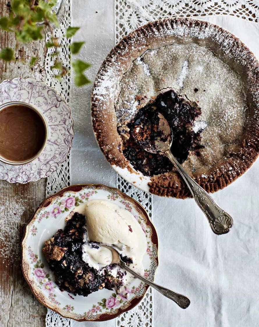 Mustikkakukko on parhaimmillaan uunituoreena, jäätelön kanssa. Valitse korkeareunainen vuoka, jotta kaikki mustikkatäyte mahtuu mukaan.