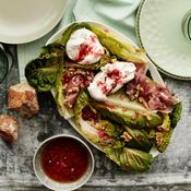 Asettele päälle vadelmia ja huiskauta hiukan tomusokeria pinnalle.