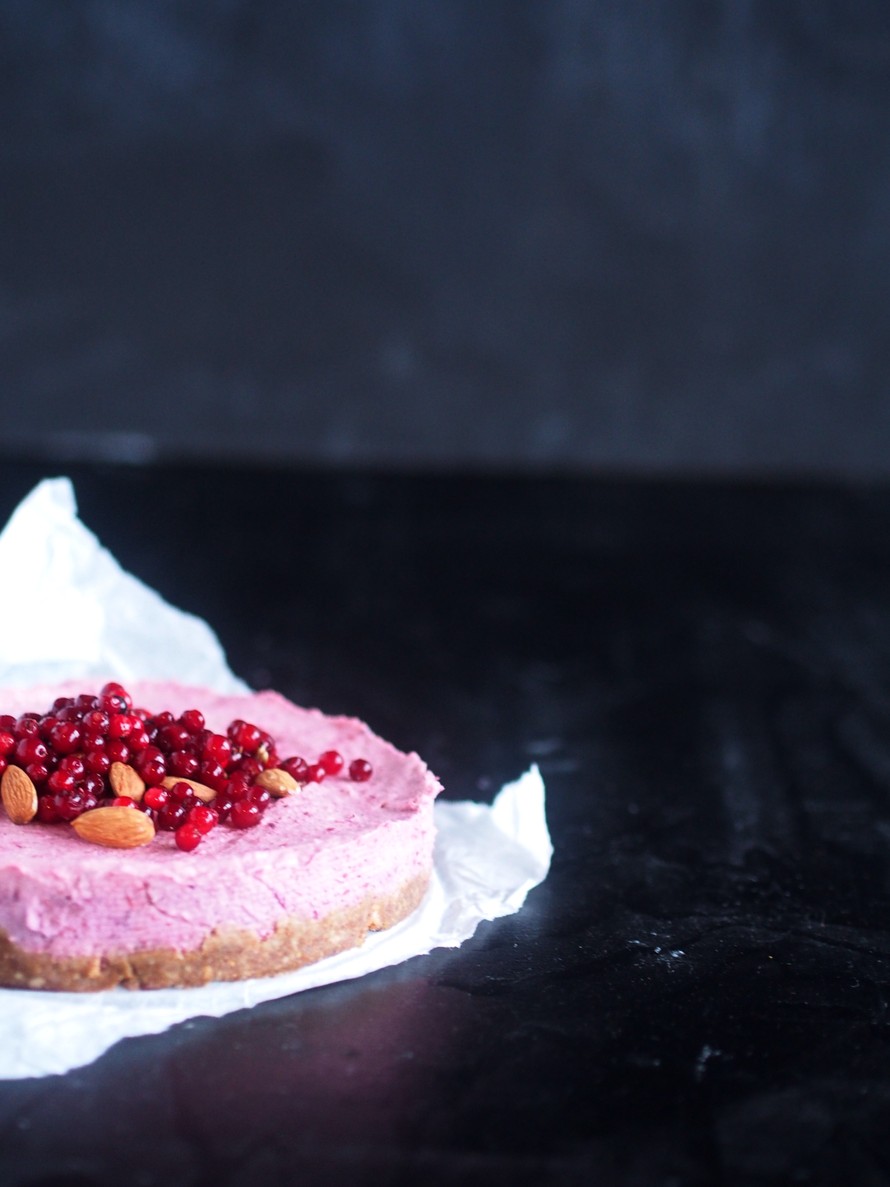 Puolukan kirpeydestä syntyy ihana raakakakku. Maut ovat talviset ja kakku sopiikin vaikkapa pikkujouluihin tai joulupöydän jälkkäriksi.