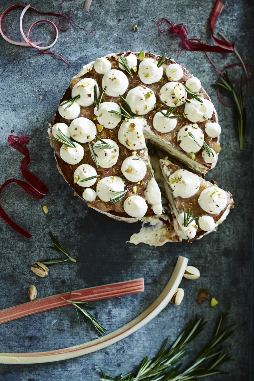 Kesäjuhlien ja puutarhakemujen maukkain kakku on samaan aikaan raikas ja makea. Sitruuna-limerahkamoussen, rosmariinin ja raparperin yhdistelmä on yksinkertaisesti vastustamaton.