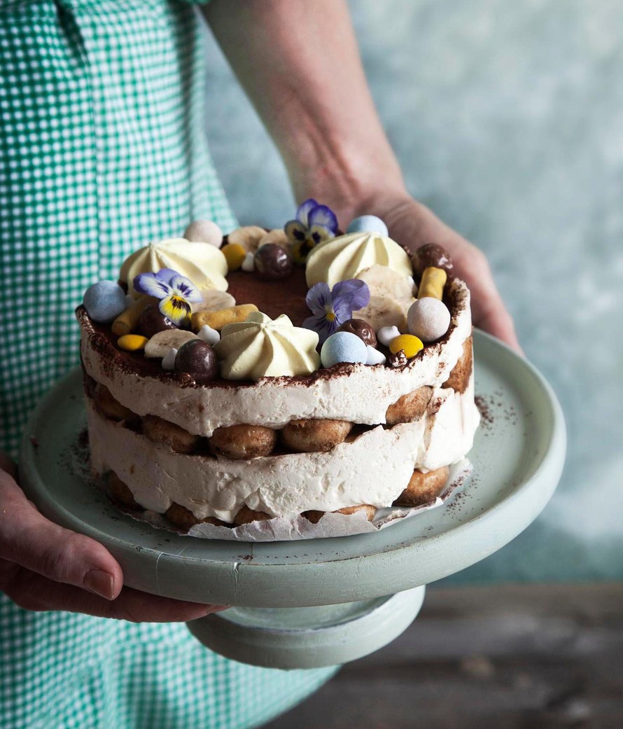 Tämä näyttävä banaanilla maustettu tiramisu vie kielen mennessään. Kasta banaaniviipaleet sitruunamehussa, niin ne eivät tummu.