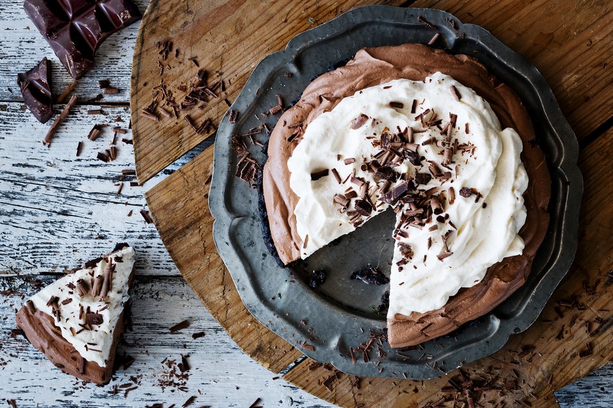 Vaahtomainen suklaa-rahkatäyte on täydellinen makupari kahvin kanssa. Kun piiraan päälle levittää vielä kuohkeaa kermavaahtoa, katoaa tämä Amerikasta vaikutteita saanut jälkiruoka parempiin suihin hetkessä.