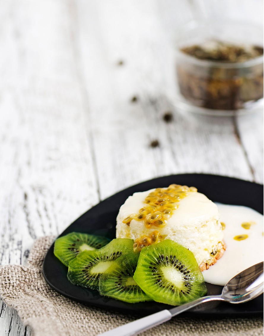 Kypsennä passiohedelmävaahto uunissa vesihauteessa.