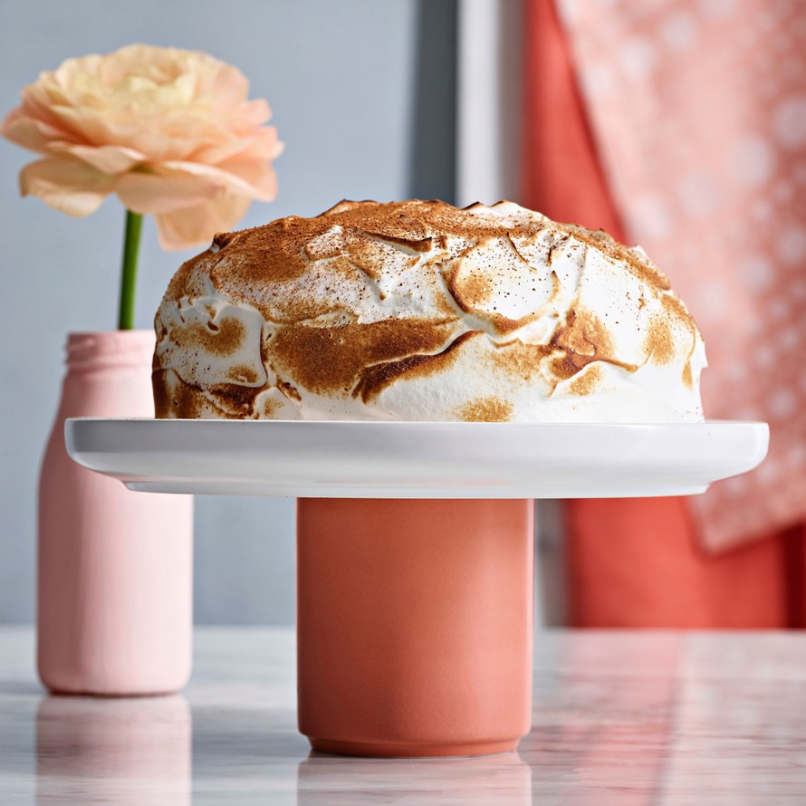 - Laita uuni kuumenemaan 250 asteeseen. Kumoa jäätelö kulhosta kelmun avulla uuninkestävään vuokaan. Levitä marenkia kauttaaltaan jäätelön päälle. Laita jäätelö kuumaan uuniin muutamaksi minuutiksi, kunnes pinta on saanut kauniin ruskeaa väriä. Tarjoa heti.