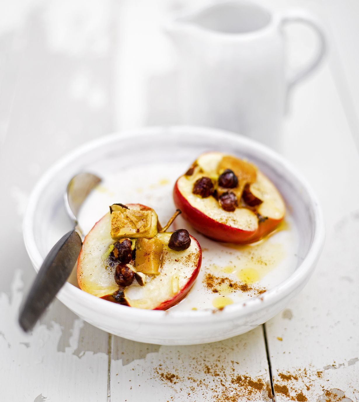 Uuniomena on klassikko, jonka voi päivittää inkiväärillä, hasselpähkinöillä ja toffeekaramelleilla. Kaada lautaselle mantelimaitoa ja ripottele kanelia päälle. Nam!