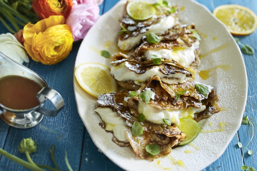 Nämä rapeat crepit saavat täytteekseen täyteläistä sitruuna-limerahkaa. Kun kokonaisuus viimeistellään maukkaalla appelsiinikastikkeella, on tämä lettuherkku kuin klassikkoannos crepes suzettes uudessa asussa.