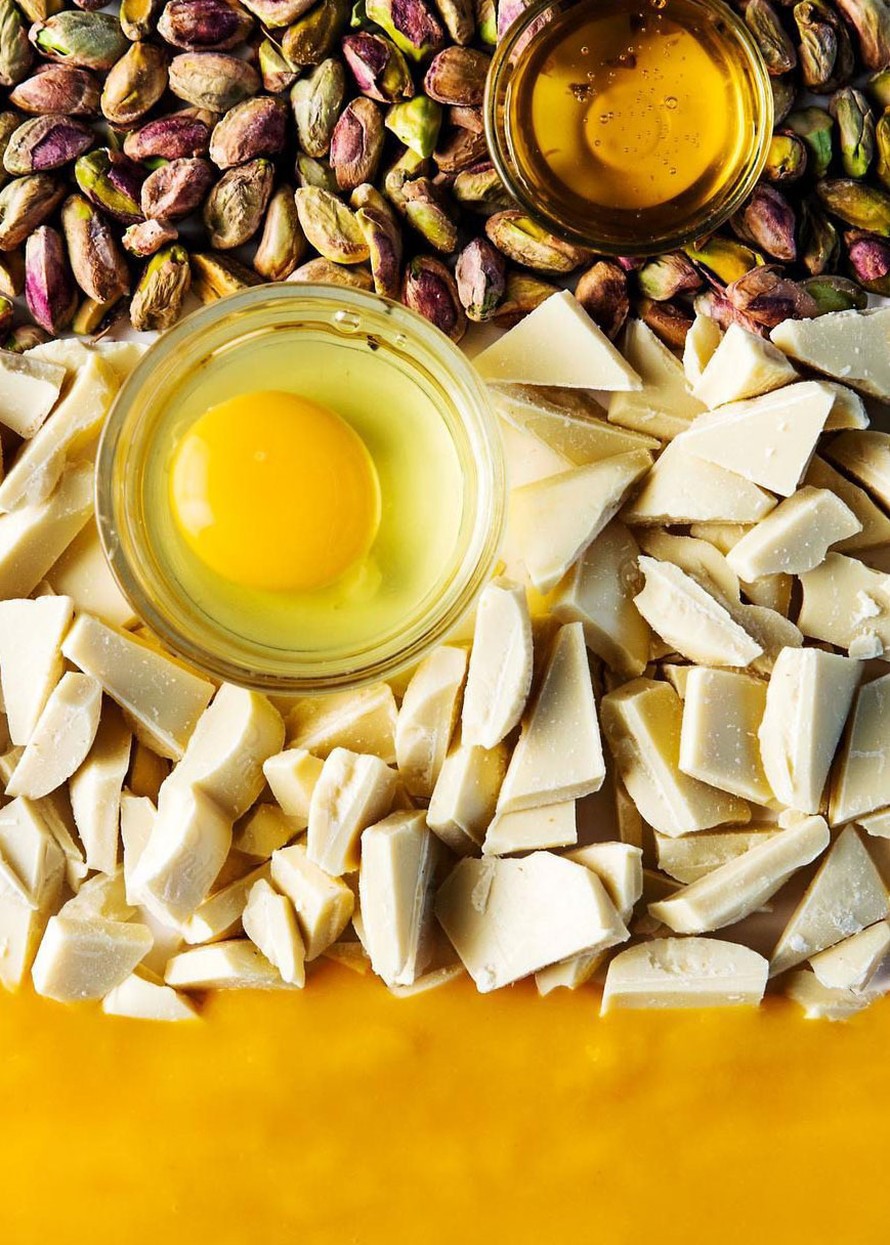 Mango-valkosuklaamousse on ihanan ilmava jälkiruoka, joka haastaa perinteisen tuhdin suklaamoussen. Sen joukossa on yllätyksenä rouhittuja pistaasipähkinöitä.