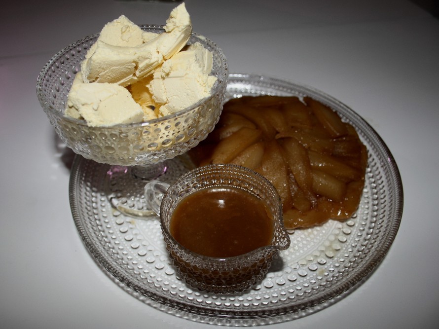 Tässä Tarte Tatinin inspiroimassa jälkiruokaherkussa on käytetty pakastimen takaseinään jo jäätyneet lehtitaikinalevyt sekä vanilijajäätelö. Ulkonäöstään huolimatta kyseessä on erinomainen ja helppo makea herkku.