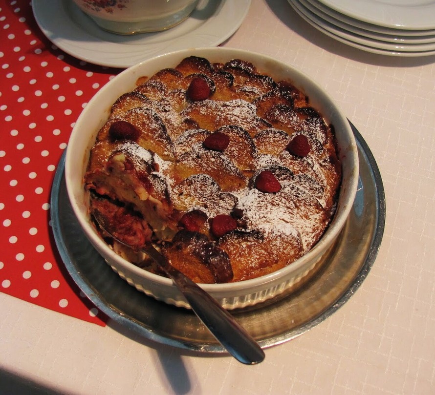 Voitele uunivuoan sisäpinta voilla. Sekoita kanamunat maidon joukkoon ja leikkaa pulla viipaleiksi. Kasta viipaleet munamaitoon ja lado vuokaan. Lusikoi pullaviipaleiden väliin haluamasi määrä vadelmahilloa ja kaada loppu munamaito päälle. Paista 200° C uunissa n. ½ tuntia. Nauti vaniljakastikkeen kera.