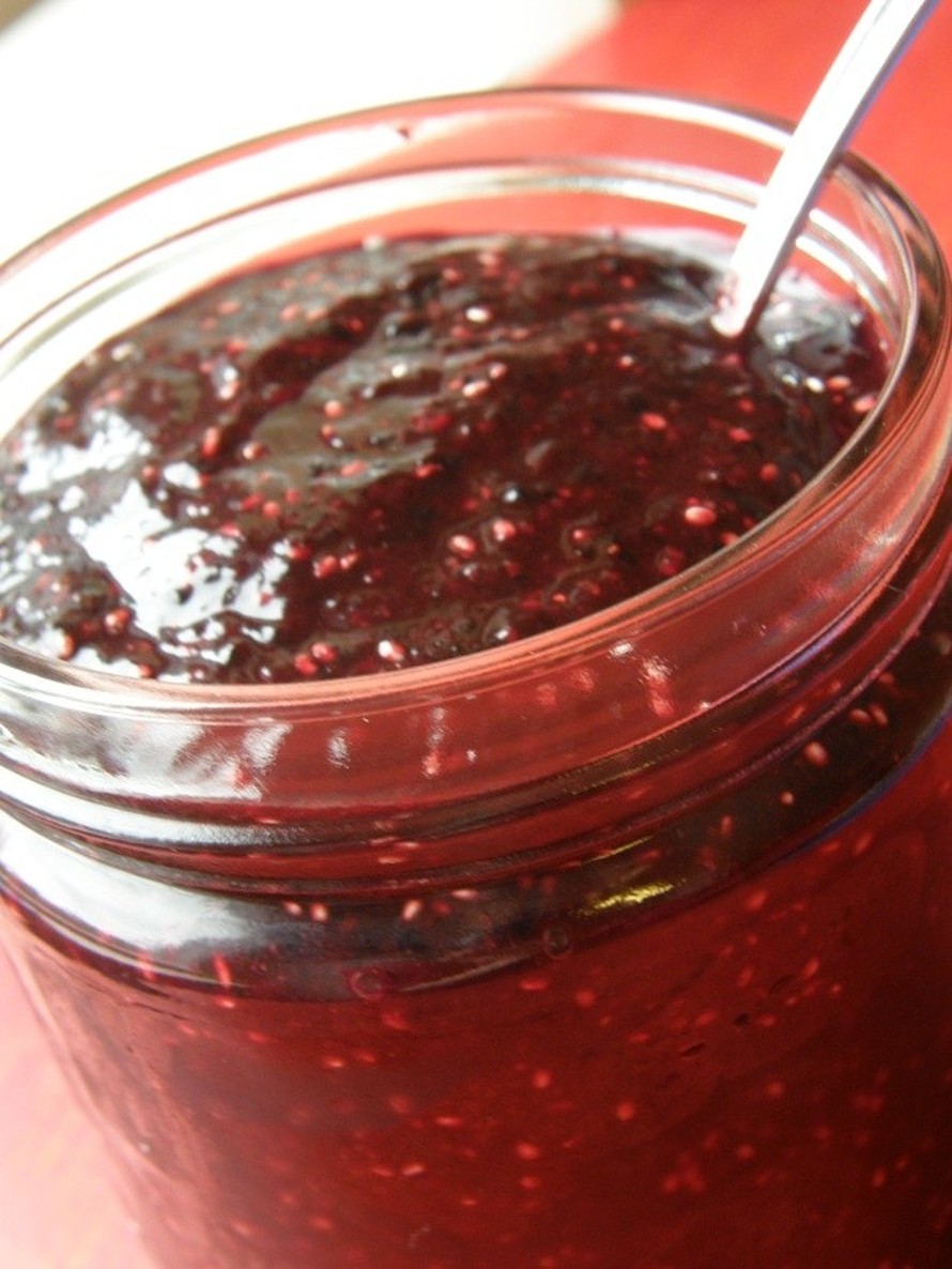 Hillo valmistuu sekoittamalla marjat, siemenet ja makeutusaine sauva- tai tehosekoittimella tasaiseksi soseeksi.