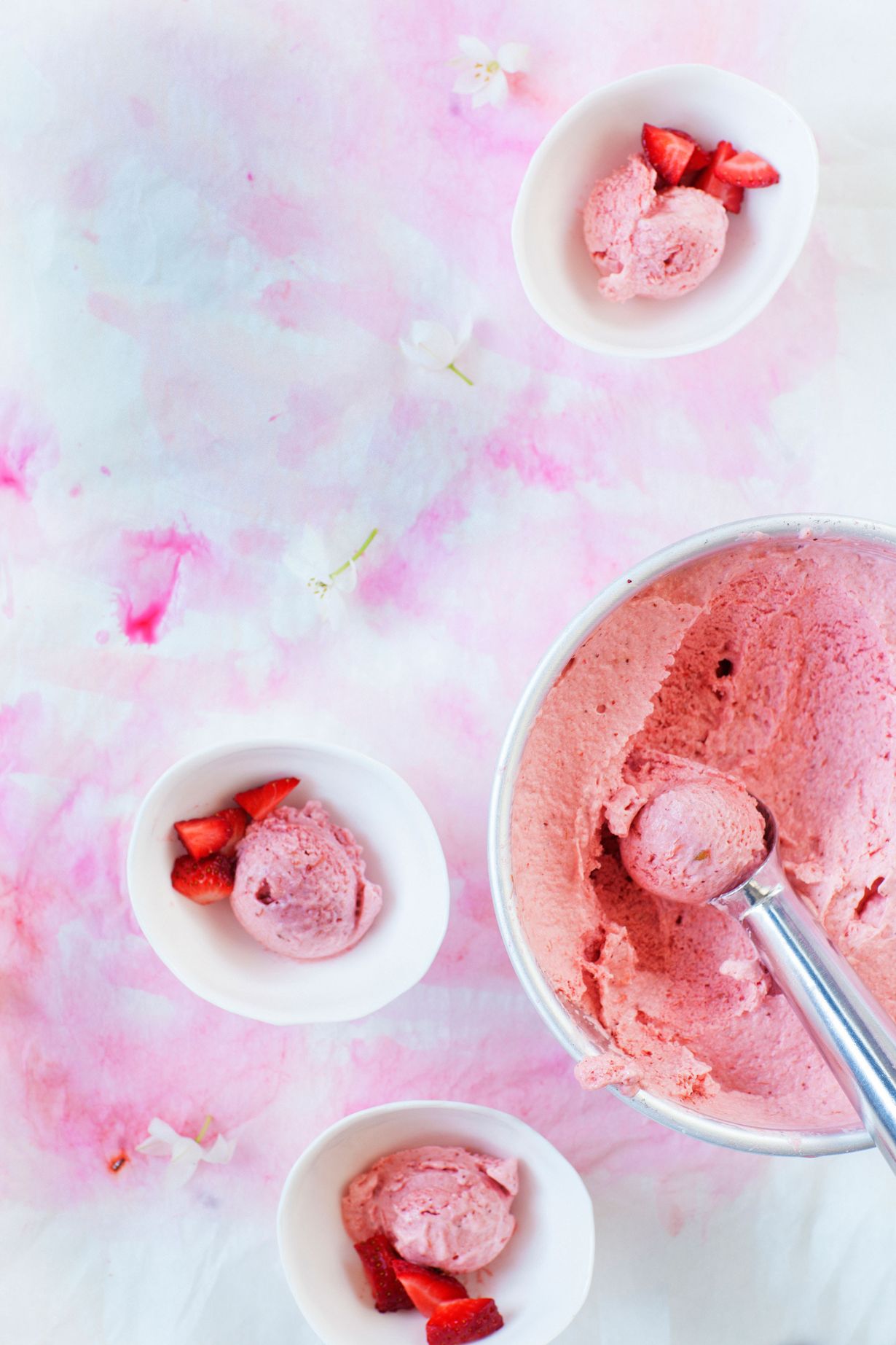 Täydellinen kesäherkku yhdistää sesongin parhaat maut, raparperin ja mansikan. Ja huoli pois: jäätelökonetta ei tarvita. Sorbetista tulee unelmaisen kuohkeaa, kun vatkaat sitä muutaman kerran pakastamisen aikana.