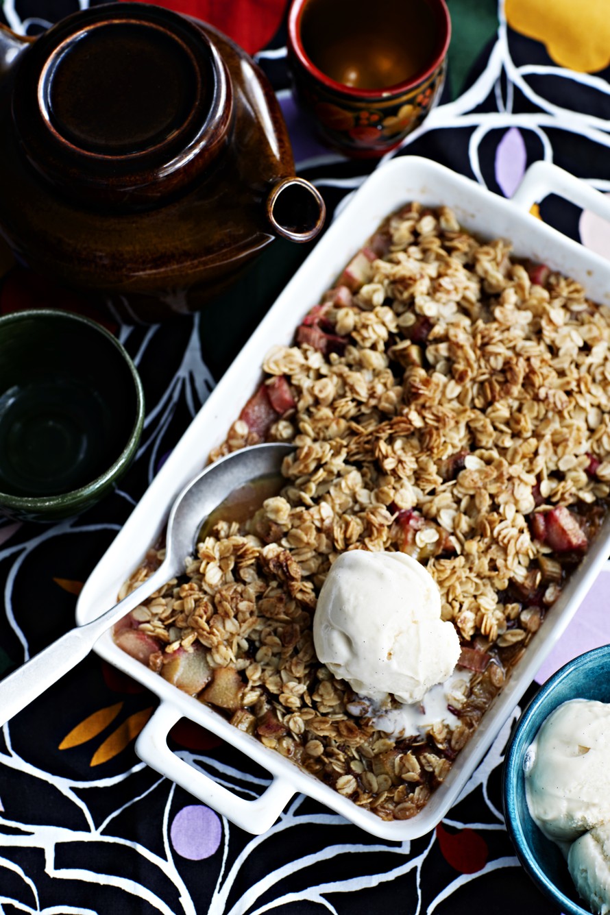 Rapeaa kauramurua ja pehmeää raparperia. Jos rakastat kaura-omenapaistosta, tämä ihanan helppo raparperiherkku on sinua varten.