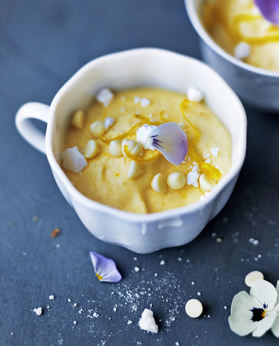 marenkia, sitruunankuorta, valkosuklaaströsseleitä, (syötäviä kukkia)