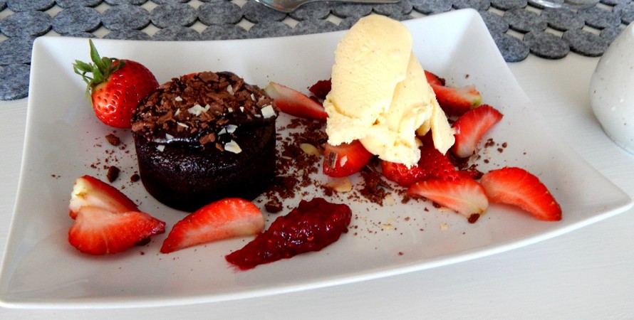 Kumoa suklaafondantit suoraan lautasille.