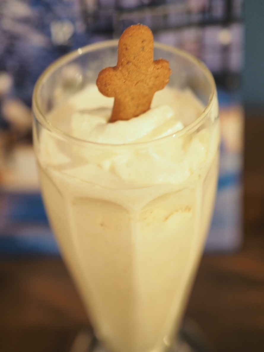 3. Lisää kulhoon maito, mausteet sekä kaksi piparia. Vatkaa tehosekoitimella pirtelöksi.