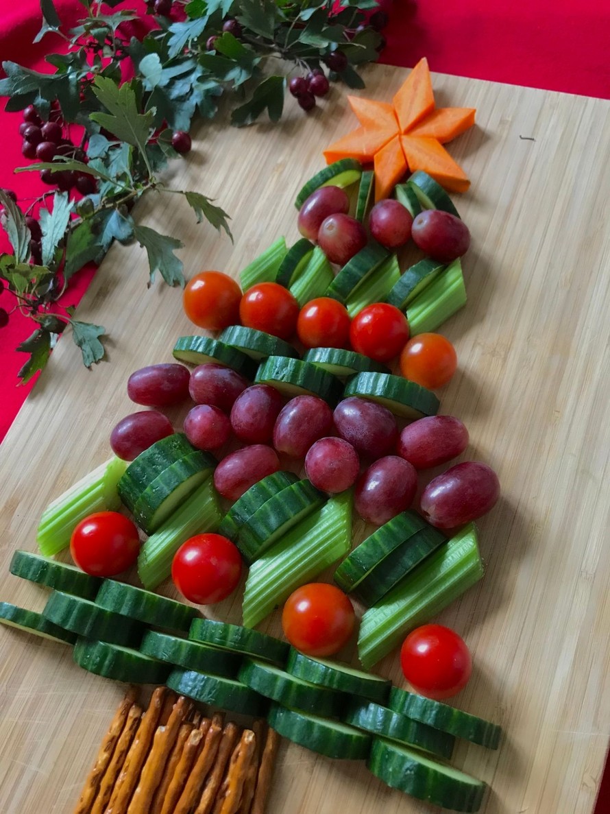 Jos haluat viettää joulua hieman terveellisimmin, tai joulupöydästä löytyy vegaaneja, tämä terveellinen ja herkullinen joulukuusi on täydellinen lisä joulupöytään! Se on myös hauska keino saada lapset mukaan keittiöön antamalla heidän itse asettaa hedelmät ja vihannekset joulukuuseksi.