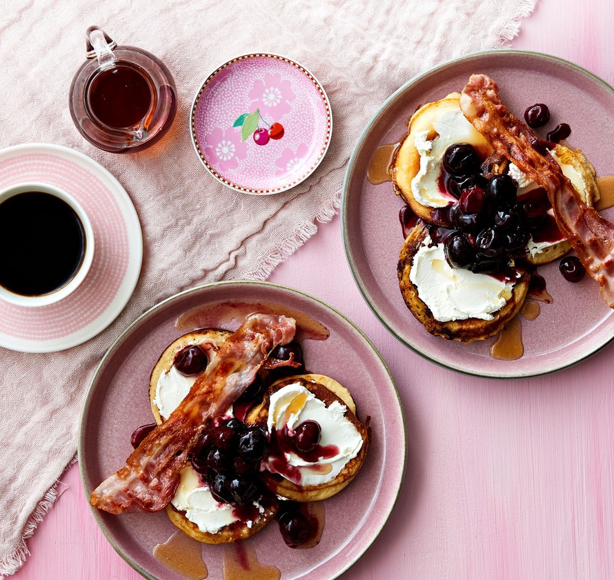 - Tarjoa pannarit mascarponen, vaniljakirsikoiden, vaahterasiirapin ja pekonin kanssa.