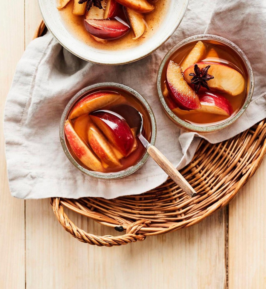 - Kaada kuuma liemi hedelmien päälle. Viilennä salaatti ja anna maustua jääkaapissa vähintään pari tuntia ennen tarjoilua.