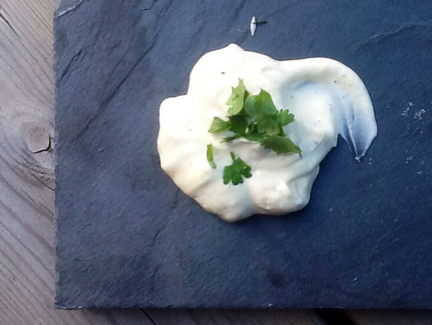Simppelisti laita kaikki ainekset korkeaan astiaan (paitsi sitruunamehu ja valkoviinietikka). Vie sauvasekoittaja öljyn pohjalle ja surrauta muutamia kertoja. Nosta sauvaa ja surrauttele myös pintaa kohden. Näet kuinka ainekset muuttuvat majoneesiksi! Mausta pikku lorauksella etikkaa ja sitruunamehulla. Sekoita sauvalla vielä lopuksi.