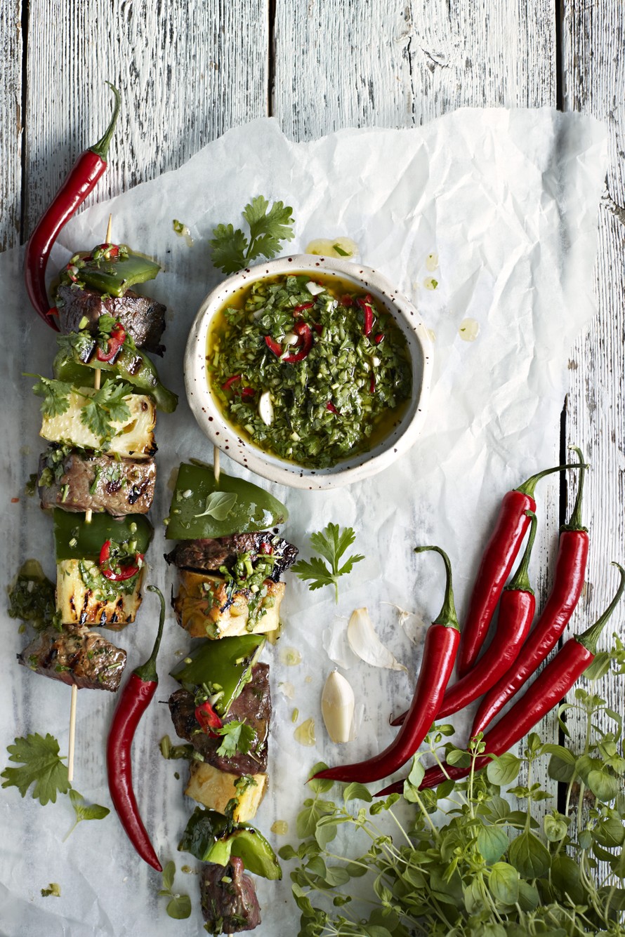 Argentiinalainen yrttikastike chimichurri maistuu grilliruokien kanssa. Sitä voi käyttää myös lihan marinoimiseen. Maku vain paranee, kun kastike saa tekeytyä jääkaapissa. Chimichurrissa on aina persiljaa, oliiviöljyä ja punaviinietikkaa. Muuten voit muunnella sitä käyttämällä erilaisia yrttejä.