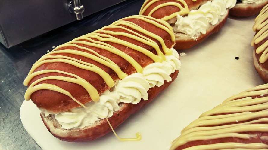 6. Nosta kypsät munkit reikäkauhalla talouspaperille. Halkaise munkki jäähtyneenä. Kasta munkit sulatetussa suklaassa ja laita jääkaappiin. Tee jäähtyneen pinnan päälle raidoitus valkosuklaalla halutessasi.