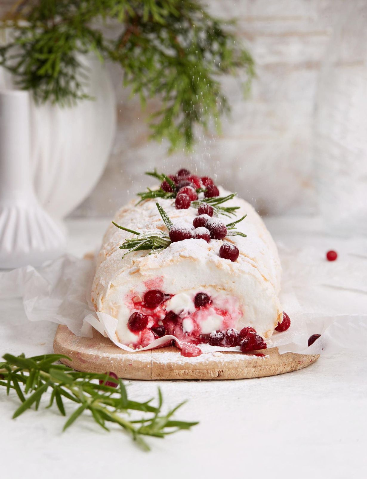 Siivilöi pinnalle tomusokeria. Koristele karpaloilla ja rosmariinilla.