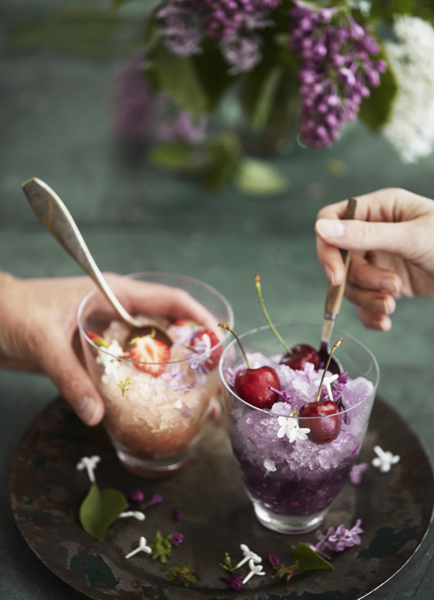 - Tarjoa syreenigranita kirsikoiden, mansikoiden ja syreeninkukkien kanssa.