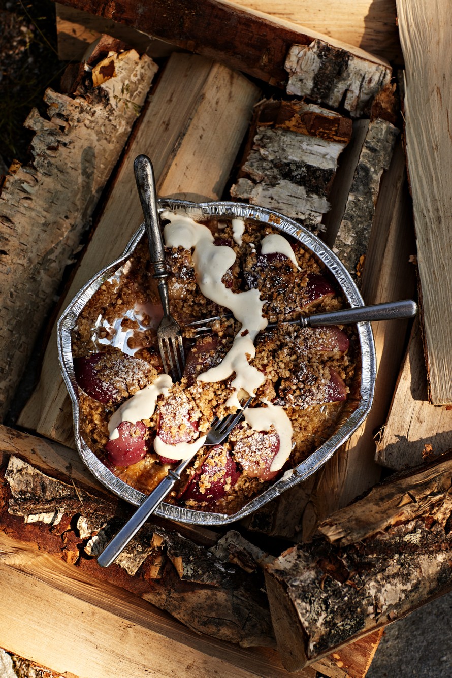 Mehukkaan makeista nektariineista paistuu nuotiolla herkullinen jälkiruoka. Kun hedelmät, kauramuru ja jogurttivaahto valmistellaan ennen retkeä omiin rasioihinsa, nuotiopaikalle jää vain paistoksen kypsennys.