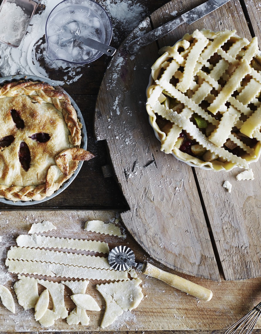 Vinkki! Taikinakannen voi koristella lettireunuksella ja leikkaamalla taikinasta päälle lehtiä tai tähtiä. Voit myös tehdä taikinaristikon. Leikkaa kansitaikina noin 1-1 1/2 sentin levyisiksi suikaleiksi ja pujottele ne ristikoksi täytteen päälle. Aloita ristikon tekeminen keskeltä. Kun ristikko on valmis, leikkaa ylimääräinen taikina reunoilta pois niin, että taikinan yläreuna ulottuu vähän vuoan reunan yli. Painele taikinareunat haarukalla tai nipistä yhteen sormilla.