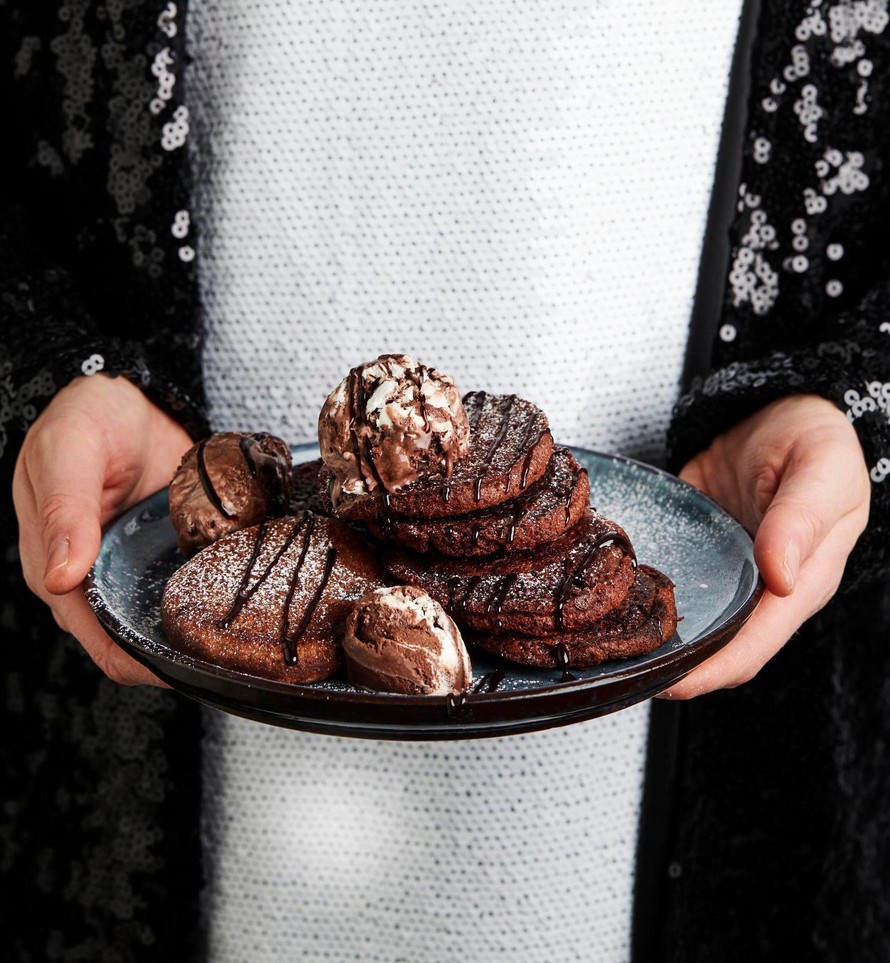 Blinit voivat olla myös jälkkäri! Vegaaniset suklaablinit maistuvat blinibileiden päätöksenä.