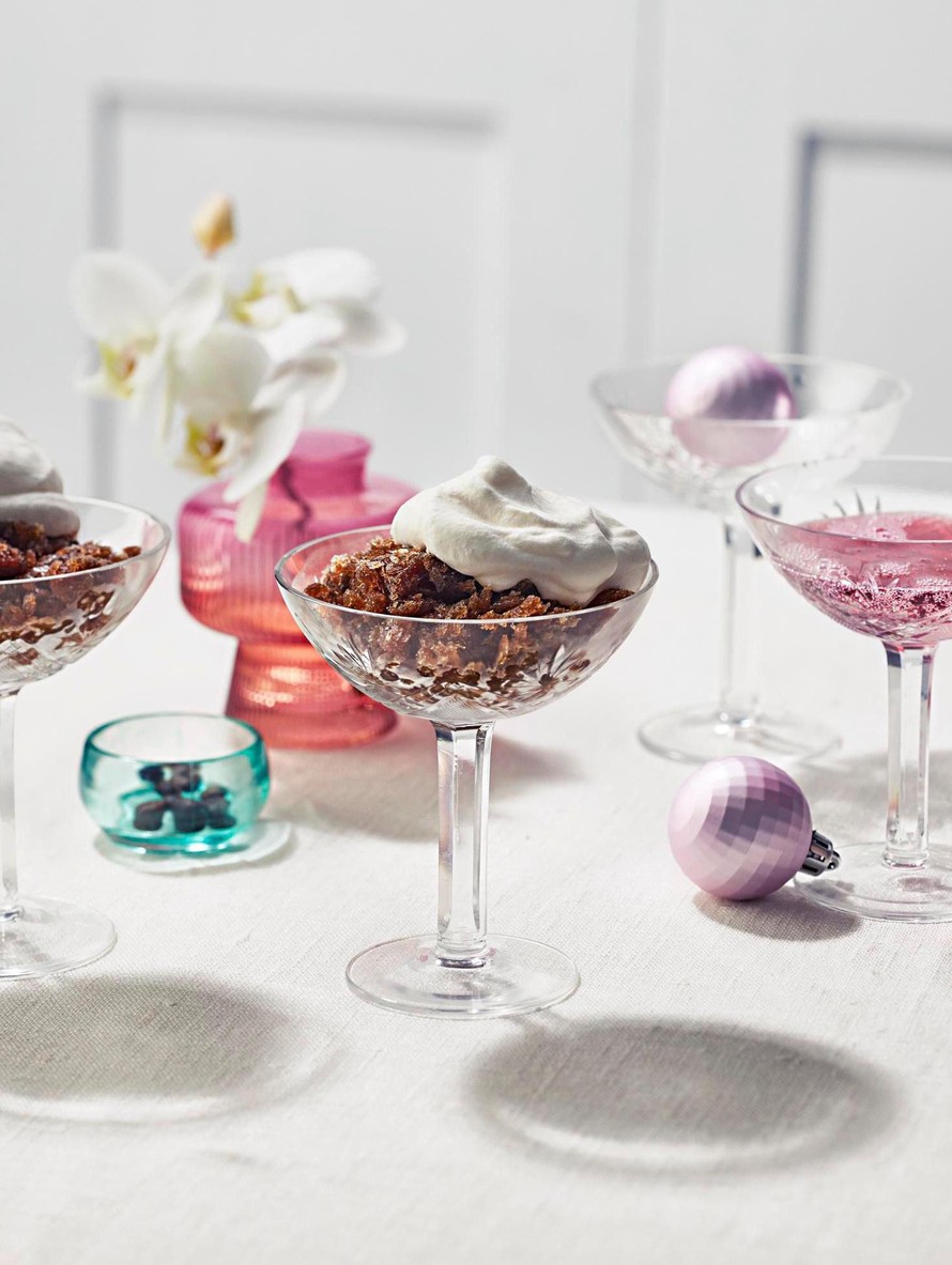 Kokoa annokset. Nosta laseihin espressohilettä ja päälle kermavaahtoa. Viimeis- tele halutessasi kahvipavuilla.