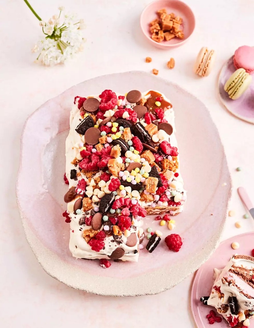 Jäätelökakku on kesän hittikakku! Hauska kerrosherkku kootaan keksijäätelöistä, kermavaahdosta ja mielikuvituksellisista koristeluista.