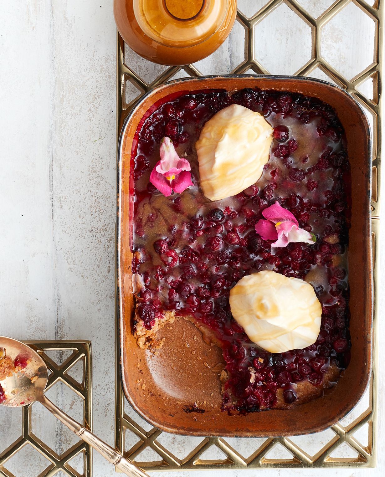 Kirpeä karpalo ja makea hunaja – voiko parempaa parivaljakkoa ollakaan? Tarjoa lämpimänä viilentävän vaniljajätskin kanssa.