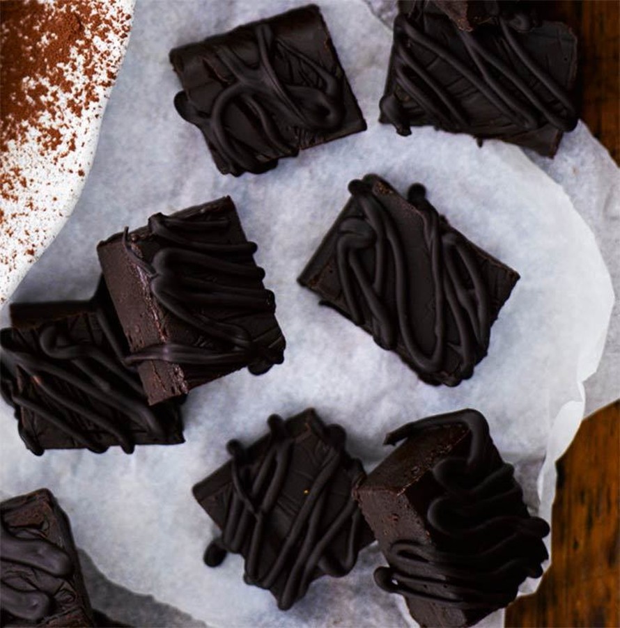Vinkki! Voit koristella fudgeja myös pähkinöillä tai vaihtaa konjakin calvadokseen, likööriin tai rommiin.