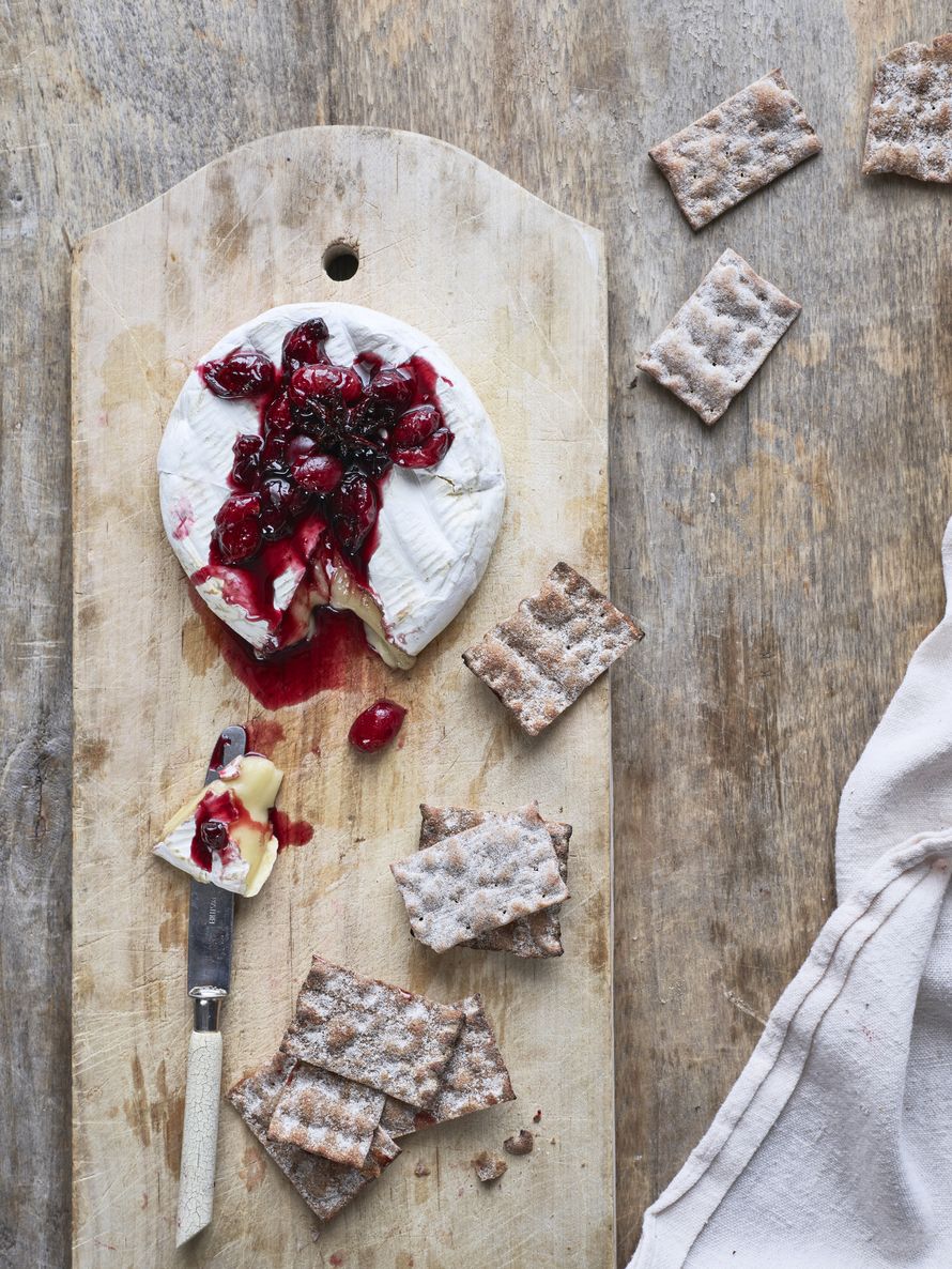 Tarjoa kuuma juusto kirsikkakompotin ja juustokeksien kanssa.