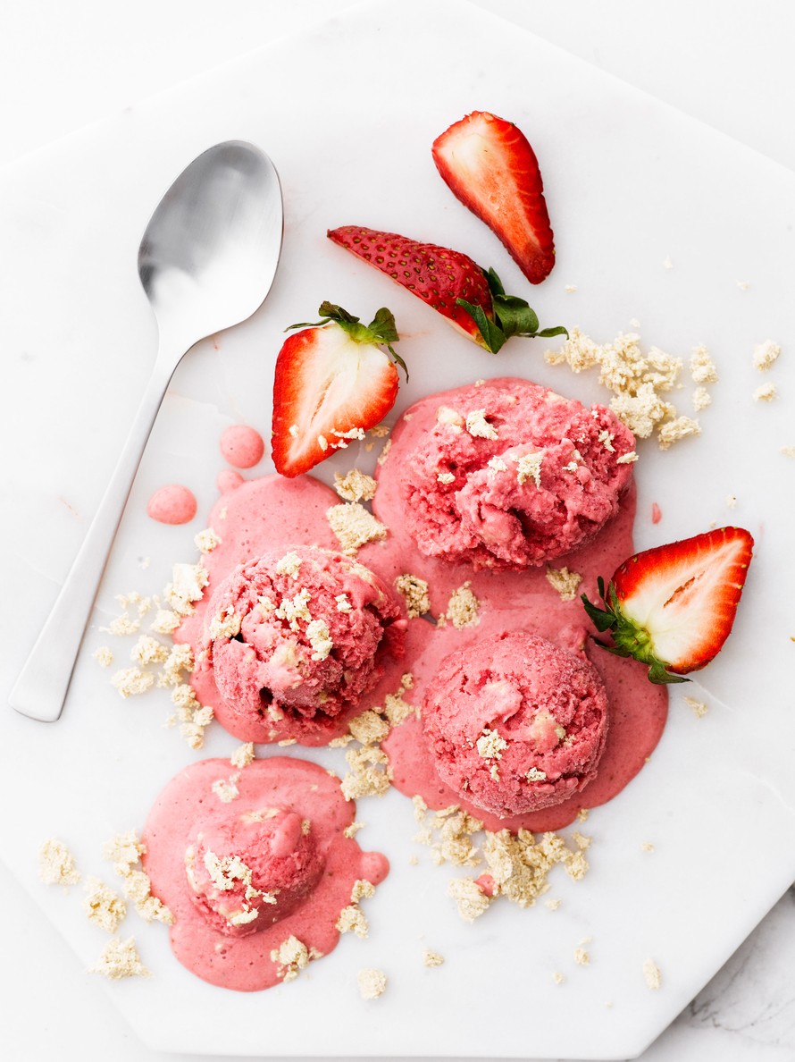 Nopea mansikka-halva-jogurttijäätelö