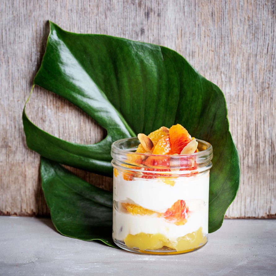 - Kokoa pasha laittamalla purkkien tai lasien pohjalle ensin appelsiininpaloja ja lusikallinen lemoncurdia eli sitruunatahnaa. Lisää päälle rahka-rusinatäytettä, sen jälkeen appelsiinipaloja. Laita purkkiin seuraavaksi ranskankerma-täytettä.
