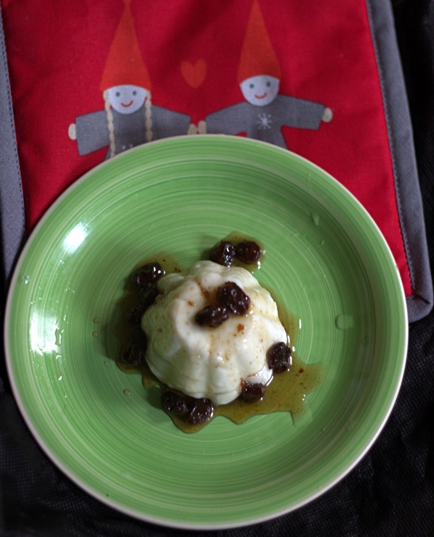 Valmista ensin rommirusinaliemi: Liota ensin rusinoita vedessä vähintään puolisen tuntia. Kaada rusinat , liotusliemi ja sokeri kattilaan, ja keitä seosta kunnes neste hieman paksunee ja rusinat ovat pehmenneet. Lisää rommi (tai rommiaromi) loppuvaiheessa.